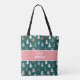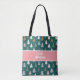 Personnalisé sur tout le sac fourre-tout imprimé personnalisé avec votre nom et nom de famille monogramme. Le dessin de ce mignon sapin de Noël est composé d'un motif de Noël à motifs plaid et rayés sur un arrière - plan vert foncé avec une bande rouge clair qui le traverse. Il suffit de modifier la conception en cliquant sur "personnaliser ce modèle" et de modifier le texte. Le texte changera des deux côtés en même temps.