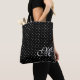 Habillez votre tenue ou vos achats de vacances avec ce sac à points de polka noir et blanc. Idéal pour les baby showers ou le sexe des bébés révèle. Monogramme blanc.
