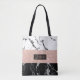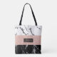 Tote Bag Monogramme noir marbre blanc rose rayures or