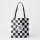 Tote Bag Monogramme personnalisé Motif À damiers noir et bl