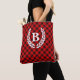 Un fourre-tout personnalisé avec motif de contrôle de buffle rouge et monogramme.