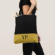 Un groupe d'or est au bas de ce sac fourre-tout noir et or. Personnalisez avec vos initiales.