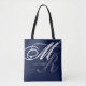 Un fourre-tout-bag bleu foncé élégant avec votre nom et vos initiales monogrammed dans un style de police de script cool