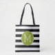 Tote Bag Monogramme vert Motif rayé noir et blanc