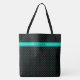 Tote Bag Motif à pois sarcelle sur fond noir avec texte per