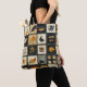 Ce sac fourre-tout à patchwork d'inspiration courtepointue d'automne présente des motifs saisonniers chaleureux disposés en carré rustiques. Citrouilles, oiseaux, coeurs et branches florales apparaissent aux côtés de blocs de plaid et de damier, avec des étoiles, des formes de flocons de neige et des paniers ajoutant une variété charmante. Rendu dans les tons terreux d'orange, de brun, de crème, de rouge et de noir, il capture l'esthétique confortable de la ferme de la saison des récoltes. Parfait pour Thanksgiving, décor rustique de campagne, automates et toute personne qui aime le style d'art populaire primitif.
