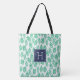 Tote Bag Motif Feuille vert et Monogramme bleu