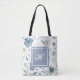 Tote Bag Motif floral aquarelle bleu violet monogramme