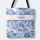 Tote Bag Motif floral bleu élégant Fleurs botaniques mignon