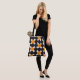 Ce sac fourre-tout moderne présente de grands points audacieux motif géométrique en noir et orange de chaque côté.