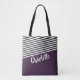 Faites votre propre sac de modèle unique violet noir blanc rayé Motif personnalisé Nom de Ricaso - ajoutez votre propre nom / texte à ce sac cool