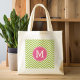 Tote Bag Motif rose et vert Chevron avec Monogramme