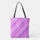 Un très joli sac avec un imprimé tout-en-un dans les tons violet et rose. Le motif utilise les lettres de SWIMMING, ce qui en fait un cadeau parfait pour quiconque aime nager.