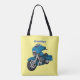 Tote Bag Motocyclette dessin animé bleu heureux mignon