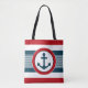 Design nautique avec décoration d'ancre en forme ronde sur bleu, rouge et blanc rayé arrière - plan