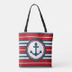 Design nautique avec décoration d'ancre en forme ronde sur arrière - plan rayé rouge, bleu et blanc