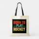 Sac fourre-tout à thème hockey avec texte qui lit Né pour jouer au hockey !
