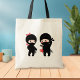 Adorable petit garçon ninja habillé en noir rougit timidement tout en tenant un coeur en papier origami derrière son dos et en regardant une mignonne fille ninja, aussi habillée en noir mais pour un arc rose sur sa tête. La poignée d’épée katana de la fille est également rose.
