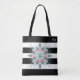 Flacon de Noël abstrait rose et turquoise sur motif à rayures noir et blanc, le moyen idéal pour transporter des cadeaux de Noël ou des nécessités hivernales. Conception personnalisée avec un monogramme personnalisé.