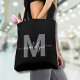Personnalisé Elégant Noir tendance moderne Nom de script Monogram Sac fourre-tout. Ajoutez une touche de sophistication à votre style quotidien avec ce sac fourre-tout chic. Présentant une initiale gris épurée centrée sur un arrière - plan noir croustillant, avec un design épuré et moderne de part et d'autre, cette fourre-tout allie élégance et fonctionnalité. Parfait pour transporter des produits de première nécessité au travail, à l'école ou à la journée, ce fourre-tout est idéal pour les professionnels d'affaires, les étudiants, ou toute personne qui apprécie les accessoires stylés et fonctionnels. Il fait un don réfléchi pour les anniversaires, les fêtes, la fête des mères ou toute occasion spéciale. Un complément poli et pratique à vos nécessités quotidiennes.