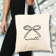 Nom simple Monogramme minimaliste Sac fourre-tout de toile. Ce sac fourre-tout mignon et élégant dispose d'un grand arc dessiné à la main en haut, associé à un nom dans élégante calligraphie manuscrite ci-dessous. Le design est présenté en évidence des deux côtés du sac pour une déclaration audacieuse et à la mode. L'arc et le nom sont actuellement noirs mais peuvent être customisés à n'importe quelle couleur pour convenir à votre style. Les vaches sont en tendance en ce moment, faisant de ce sac un accessoire girly, féminin, et doux qui est parfait pour l'utilisation quotidienne, les voyages d'achat, ou le don à quelqu'un spécial. Son design minimaliste mais élégant est non seulement élégant mais aussi pratique, mêlant charme branché et charme intemporel. Que vous soyez à la recherche d'un fourre-tout personnalisé mignon ou que vous adoptiez la dernière mode, ce sac est un must pour tout amateur d'accessoires.