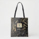 Tote Bag Nom et monogramme, boîte dorée, marbre noir et or