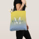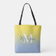 Tote Bag Nom moderne Monogramme Jaune à bleu clair Gradient