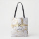 Tote Bag Nom & Monogramme, Barre Dorée, Marbre Blanc Et Dor