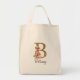 Tote Bag Nom personnalisé Blush Roses Rose lettre B en feui