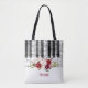 Tote Bag nom personnalisé fleurs bordeaux notes musique pia