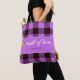Nom personnalisé Tartan Maid Of Honor Bridesmaid Sac fourre-tout Élégant, élégant et tendance personnalisable sac bridesmaid comprend "domestique d'honneur", "nom personnalisé" et un papillon doré sur une bande orchidée au milieu et arrière - plan tartan orchidée / noir plaid. Personnalisez ce joli sac comme un cadeau merveilleux pour une bonne d'honneur, mariée, demoiselle d'honneur, enseignant, ami ou n'importe quel membre de votre famille en ajoutant votre monogramme / en changeant la police, la couleur, la taille et la position.