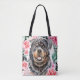 Tote Bag OEuvre d'rose à couronne d'aquarelle Rottweiler