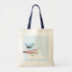 Oiseau bleu sur branche de fleur rose. Joli sac de shopping fourre-tout.