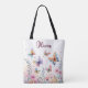 Ce sac fourre-tout personnalisé dispose d'un jardin de papillons couleur aquarelle rêveur où des papillons à ailes colorées dansent parmi des fleurs sauvages douces. Avec un arrière - plan apaisant de teintes rose, bleue et pêche, cette charmante illustration crée une atmosphère magique et sereine.