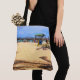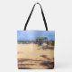 Si vous aimez la plage, apportez-la chez vous (sans le sable, bien sûr) avec l'œuvre sur ce sac cabas. L'image a été réalisée à partir d'une photographie originale de ZoeSPEAK, une scène de plage avec vue sur une jetée s'avançant dans l'océan. Les ombres des palmiers forment des motifs sur le sable.
