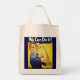 Voici un sac fourre-tout naturel d'épicerie biologique avec l'image de Rosie, une icône culturelle des États-Unis, représentant les femmes américaines qui travaillaient dans des usines pendant la Seconde Guerre mondiale, dont beaucoup travaillaient dans les plantes manufacturiers qui produisaient des munitions et des fournitures de guerre.