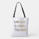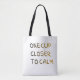 A simple, illustrative text-based design featuring the motivational quote "ONE CUP CLOSER TO CALM." The hand-drawn style typography uses a subtle black to golden-brown gradient against a light gray background, making it perfect for a minimal aesthetic on a sweatshirt, t-shirt, mug, or as a cozy, inspiring graphic for coffee and tea lovers.