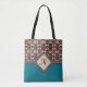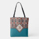 Tote Bag Orange, Turquoise, Inspiré Tribal Brown