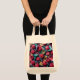 Un sac fourre-tout élégant avec un motif en origami acrylique pour un look ludique et élégant. Fabriquée à l'aide de la technique de peinture acrylique et inspirée de l'art du splash. Les framboises délicates sont transformées en origami complexe avec une charmante palette de roses avec des éclaboussures de bleu et de jaune.