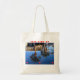 The original image on this Tote Bag comes with instructions - three bright red arrows pointing upwards with the words "THIS SIDE UP" in bold white letters. That's because the original photograph by ZoeSPEAK appears to be upside down, but is actually a photo of a reflection on the water. We see two palm trees against a deep blue sky, with part of an outdoor deck, boat and boat lift in the background, toward the base of the trees, but at the top of the photo in this case, since the entire photo is the reflection. There are ripples over the whole image, created by the surface of the water, not a filter. Above the photo are the words “THIS SIDE UP”, set for you to personalize or delete if you prefer.