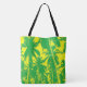 La silhouette des palmiers tropicaux crée un sac design funky pour des vacances exotiques ou la plage. Palmiers verts et jaunes