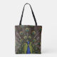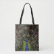 Le sac fourre-tout a conçu avec une photo d'un beau paon et de ses plumes.