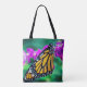 Tote Bag Papillon monarque orange photo fleur violet chic