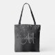 Ajoutez une touche de parties scintillant et de glamour à votre tenue avec ce sac fourre-tout personnalisé élégant. Ce modèle design chic dispose d'un gros monogramme de script gris et de votre nom en blanc pour personnaliser sur un arrière - plan de texture métallique brossée noire accentué par une bordure de parties scintillant faux goutte. Un cadeau féminin unique pour l'anniversaire, les fêtes et toute occasion spéciale. Conçu pour vous par des Tee - shirts extrêmes !