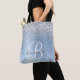 Tote Bag Parties scintillant en argent brossé bleu Nom du m