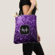Personnalisez brillamment tout le sac fourre-tout d'impression avec votre initiale et votre nom. De belles parties scintillant violettes brillantes et girly glamour scintillent. Photo de flammes violettes pas de parties scintillant réelle !