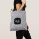 Personnalisez brillamment tout le sac fourre-tout d'impression avec votre initiale et votre nom. De belles parties scintillant brillantes brillantes en argent girly brillent. Photo des éclats d'argent pas de parties scintillant réelle!