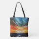 Deux de mes peintures préférées sont imprimés sur ce fourre-tout. L'avant avec une peinture de voilier "nous a laissés partir naviguer" et le dos montre qu'une peinture de coucher du soleil "que je crois aux couchers du soleil". Beaux-arts de Jenny Simo de ©
