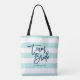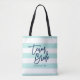 Tote Bag Pastel Mint and White Stripes Blue Team Bride