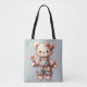 Tote Bag Pastel Teddy Bear Holding Flower Wear Overalls
